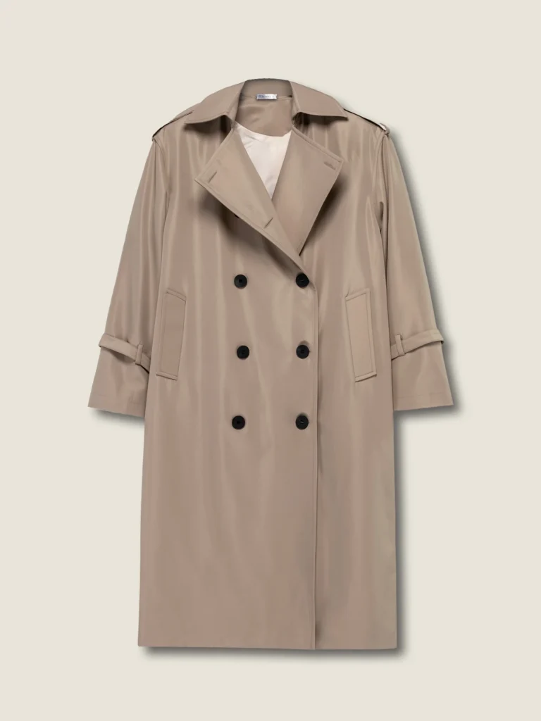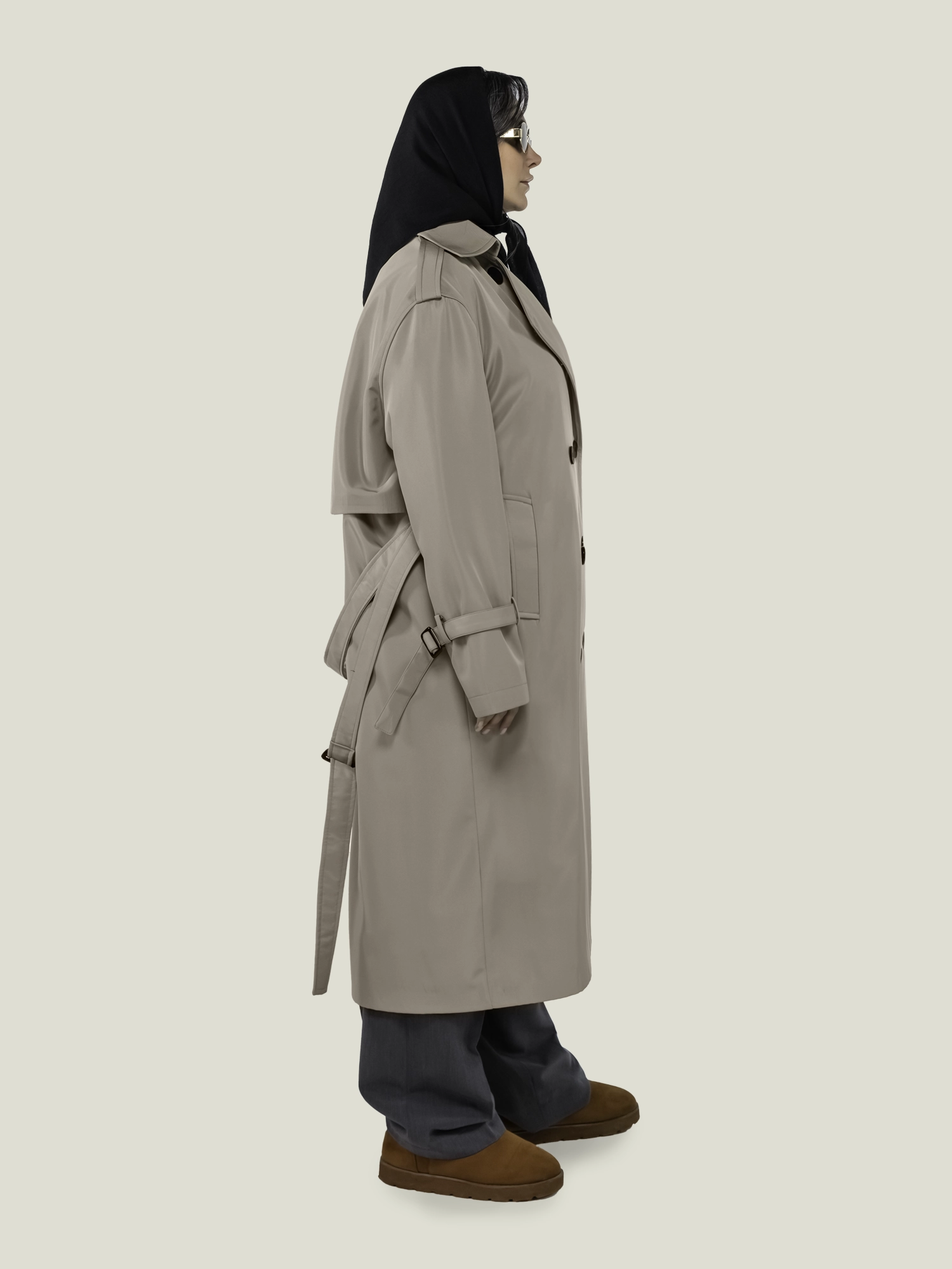 ترنچ کت بیسیک، با جنس بارانی با کیفیت، یک آیتم جاودانه و کاربردی برای استایل روزمره و کژوال است.