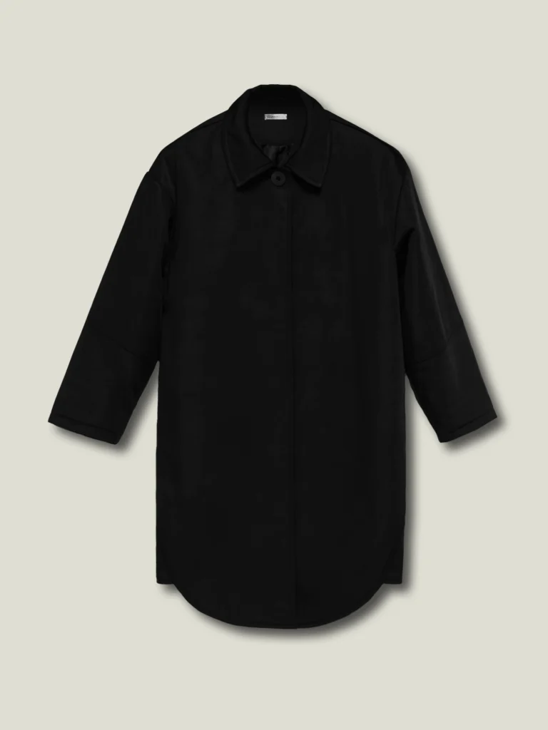 کاپشن اورسایز تک دکمه، با جنس بارانی با کیفیت، یک انتخاب سبک و کژوال برای استایل روزمره است.